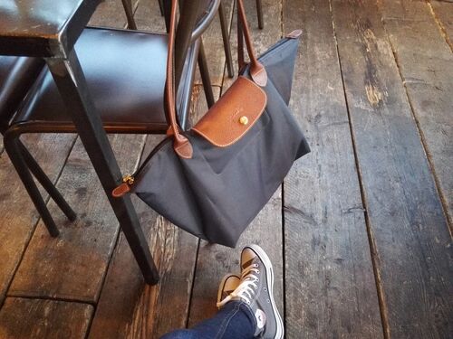 今、イタリアに滞在しているのですがこちらは3月ぐらいの陽気でとても寒いので、黒いライダースジャケットを着て出かけました。 バッグはちょっとしたお出かけにも便利なロンシャンのプリアージュ。 足元はグレーのハイカットのコンバース。 グレーのコンバ…
