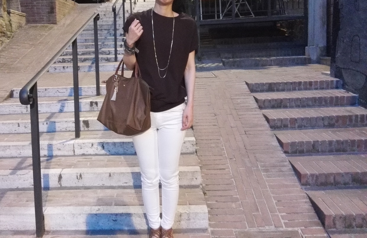 ただのTシャツよりも若干エレガントになるので、夜出かけるときにいいですね。ガンガン洗えてすぐ乾くし、助かります!