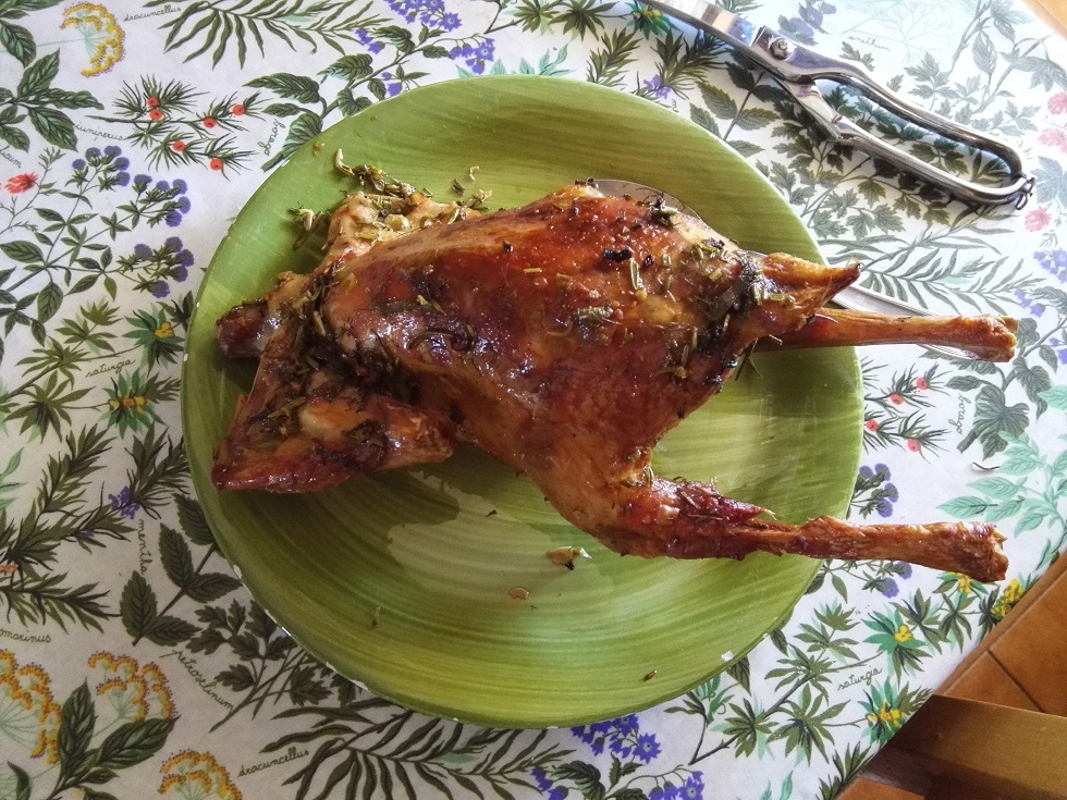 こちらは有機飼料を与え、平飼いしている鶏を購入してお家で焼いてもらったもの。